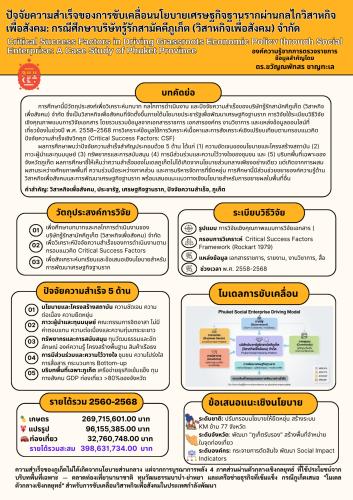 องค์ความรู้จากการตรวจราชการ ปัจจัยความสำเร็จของการขับเคลื่อนนโยบายเศรษฐกิจฐานรากผ่านกลไกวิสาหกิจเพื่อสังคม (บริษัทประชารัฐภูเก็ต)