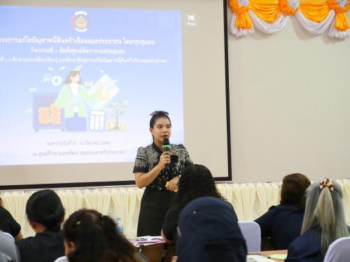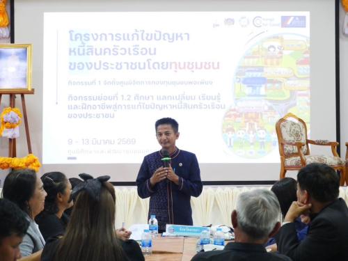 นางมุกดา หลิมนุกูล ผู้ตรวจราชการกรม ปฏิบัติหน้าที่ผู้อำนวยการศูนย์ศึกษาและพัฒนาชุมชนนครศรีธรรมราช ให้เกียรติเป็นประธานในพิธีเปิด โครงการแก้ไขปัญหาหนี้สินครัวเรือนของประชาชนโดยทุนชุมชน กิจกรรมที่ 1 จัดตั้งศูนย์จัดการกองทุนชุมชน กิจกรรมย่อยที่ 1.2 ศึกษาแลกเปลี่ยนเรียนรู้และฝึกอาชีพสู่การแก้ไขปัญหาหนี้สินครัวเรือนของประชาชน ดำเนินการระหว่างวันที่ 9-13 มีนาคม 2569 พร้อมบรรยายพิเศษในหัวข้อ “แนวทางการขับเคลื่อนงานพัฒนาทุนชุมชนขับเคลื่อนเศรษฐกิจฐานราก” โดยเน้นย้ำว่าการแก้ปัญหาหนี้สินที่ยั่งยืน ไม่ใช่เพียงการหาเงินมาใช้หนี้ แต่คือการบริหารจัดการทุนในชุมชนให้เกิดการหมุนเวียนและสร้างอาชีพที่มั่นคง