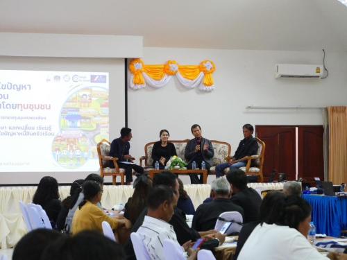สำหรับกิจกรรมในช่วงบ่าย เป็นการเข้าสู่เนื้อหาเชิงลึกผ่าน เวทีอภิปรายการดำเนินงานศูนย์จัดการกองทุนชุมชน เพื่อให้ผู้เข้าร่วมเห็นภาพรวมของการจัดการหนี้สินในระดับพื้นที่ จากนั้นได้เข้าสู่ภาคปฏิบัติในกิจกรรม "วิเคราะห์สถานะทางการเงินของตนเอง" เพื่อให้ผู้เข้าร่วมโครงการเห็นภาพรวมของรายรับ-รายจ่าย และค้นหาต้นตอของปัญหาหนี้สินรายครัวเรือน เพื่อนำไปสู่การวางแผนแก้ไขอย่างตรงจุด